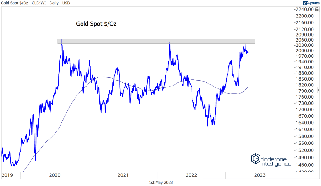 Precious metals are off to a strong start in 2023, led by an 8% rally in gold. That puts the yellow metal just 3% from all-time high prices, which were set in August 2020. A breakout from this range could spark a move to 3170.