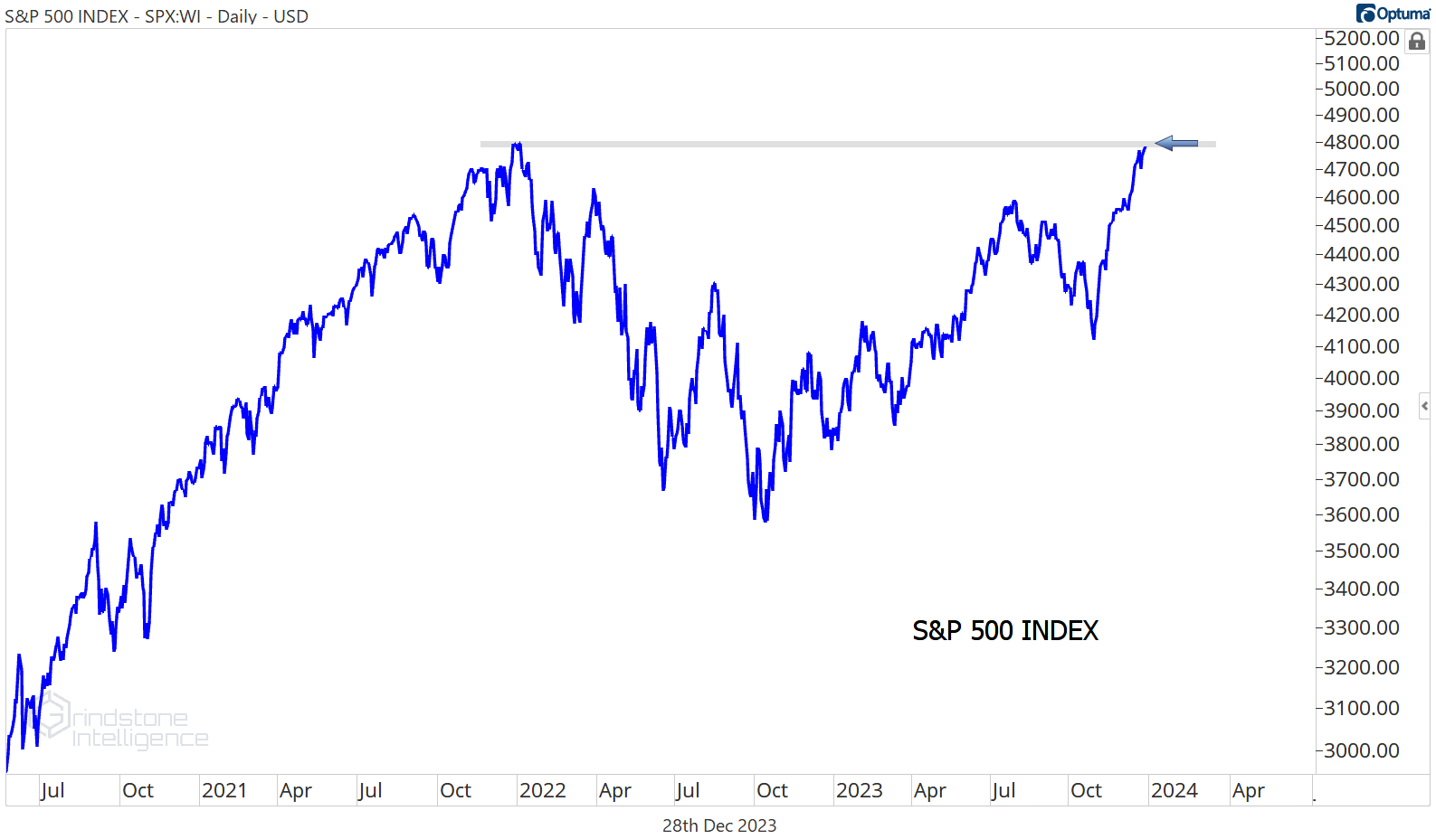 Stocks have had a great year, but the S&P 500 hasn’t broken out. At least not yet. Can we expect stocks to blow right past this level as if it doesn’t exist? Or does resistance matter? A rejection here - just when investor sentiment has shifted to bullish extremes - could set the stage for a difficult first half.