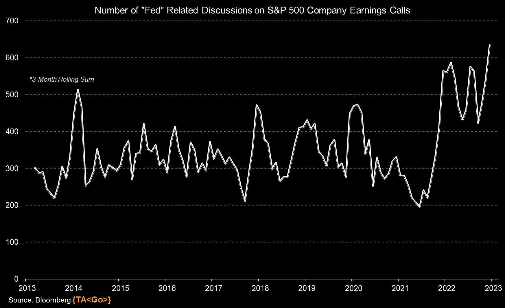 Rarely has the Federal Reserve been so popular.. or perhaps unpopular. Interest rates were on the rise for most of the year, and that meant tougher financing conditions for businesses and consumers alike. The number of ‘Fed’ mentions on company earnings calls surged in 2023.