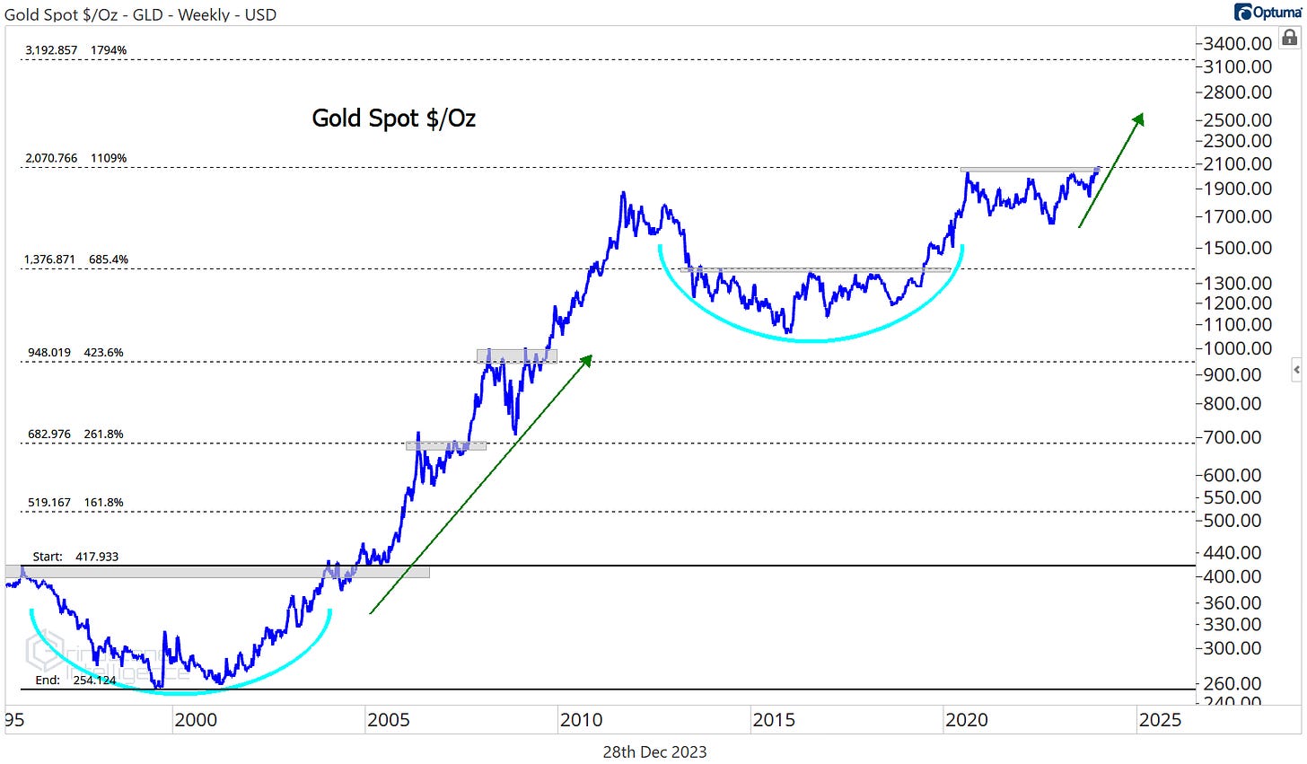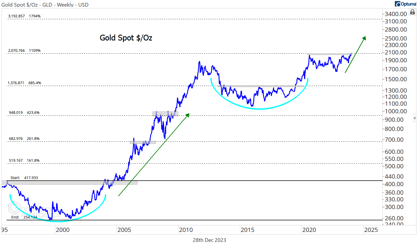 We’ve been watching $2100 for what seems like forever. Will gold ever break out to new highs? Maybe 2024 is finally the year that gold finds itself back in the limelight.