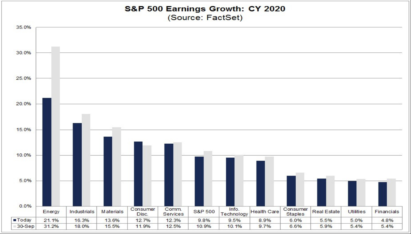 While it’s true the estimates for each sector have ratcheted lower since the end of September, the U.S. consumer remains healthy by all accounts. If Friday’s trade deal stands the test of time, the uncertainties that have held back capital spending could dissipate. A true trade resolution could be a stabilizing, if not re-energizing, force for S&P 500 earnings.