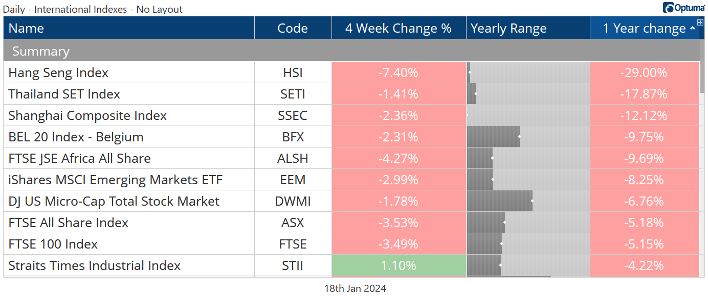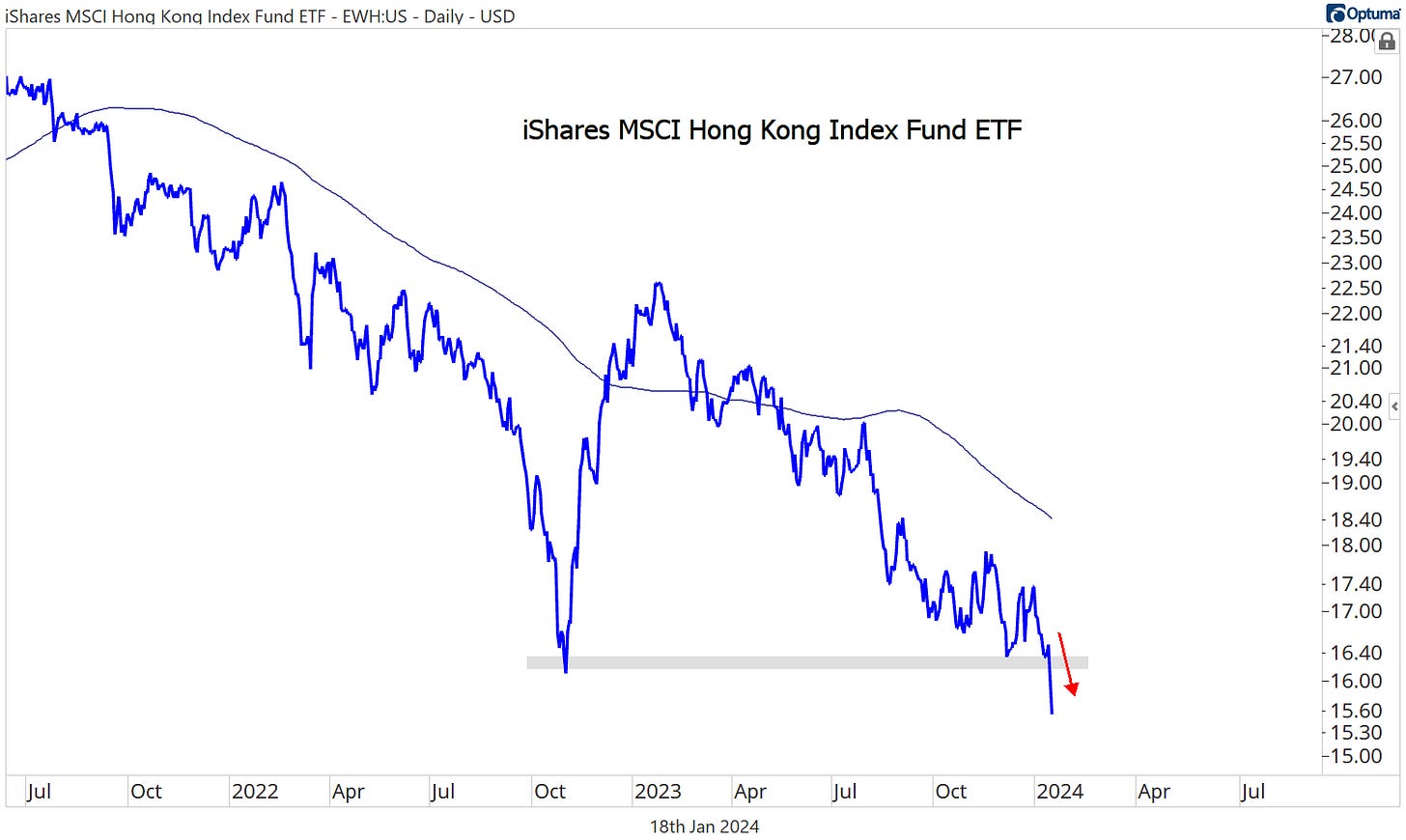 China can’t get anything going. Stocks in Hong Kong just broke down to new 52-week lows - not something you see in an uptrend.
