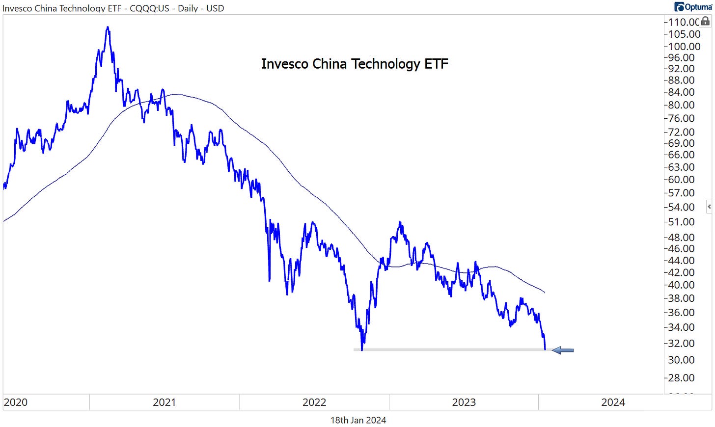 China bulls can hang on to the fact that Chinese Tech stocks haven’t broken their own 2022 lows (at least not yet), and based on the news flow out there, it’s hard to imagine China sentiment getting worse. What better place for buyers to step in and defend?