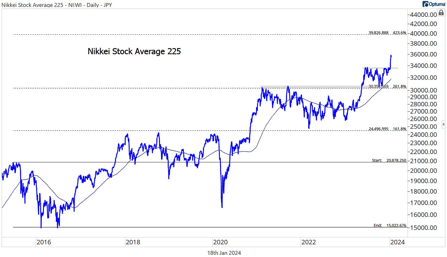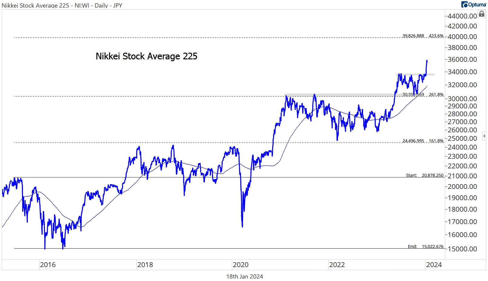 Trends in Japan are just as healthy. The Nikkei 225 resolved higher from a 6-month consolidation last week. That just continues the pattern of breakout-consolidation-breakout that’s been in place for years.