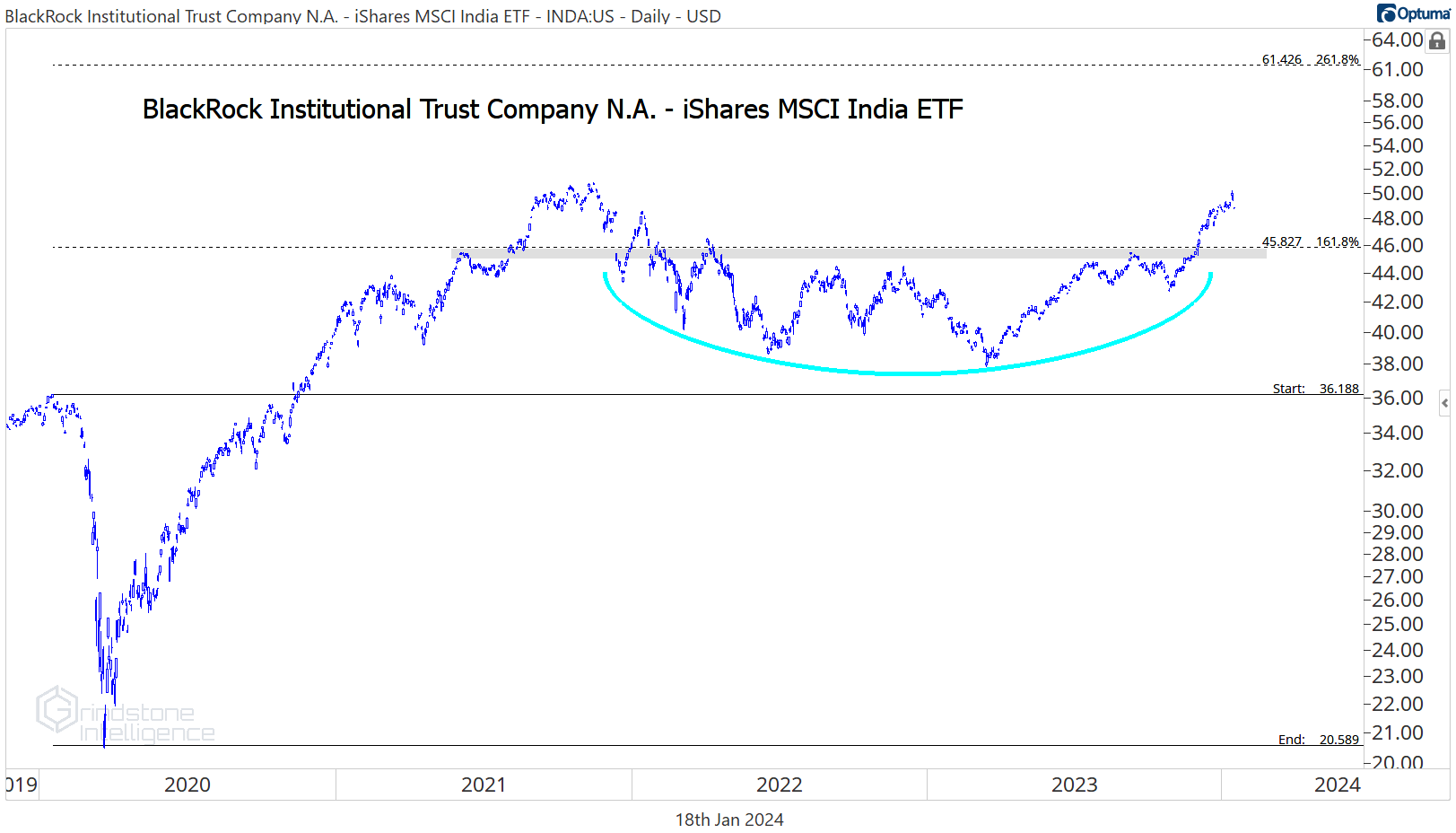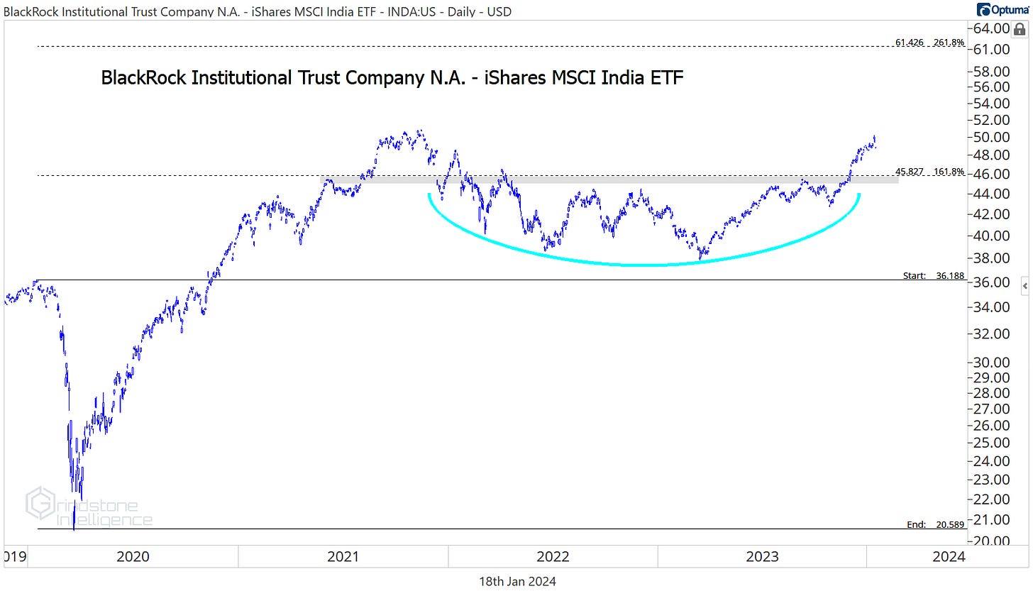 Elsewhere in APAC, Indian stocks are knocking on the door of their 2021 highs after breaking out above the 161.8% retracement from their 2020 decline. We like this INDA above $46 with a target above $60.