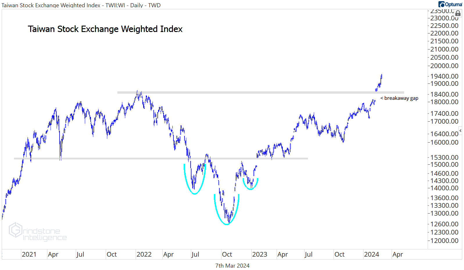 Neither are new highs. Check out this huge breakaway gap for the Taiwan Stock Exchange Index.