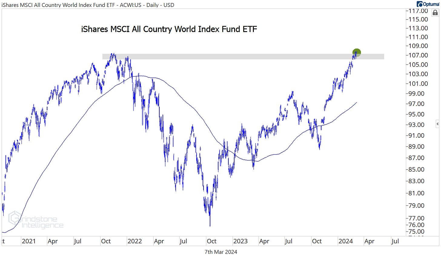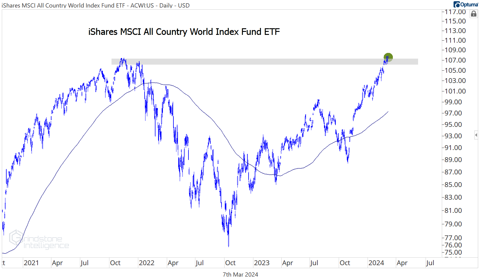 Here’s the MSCI All Country World Index Fund ETF, ACWI. It just broke out to new all-time highs.
