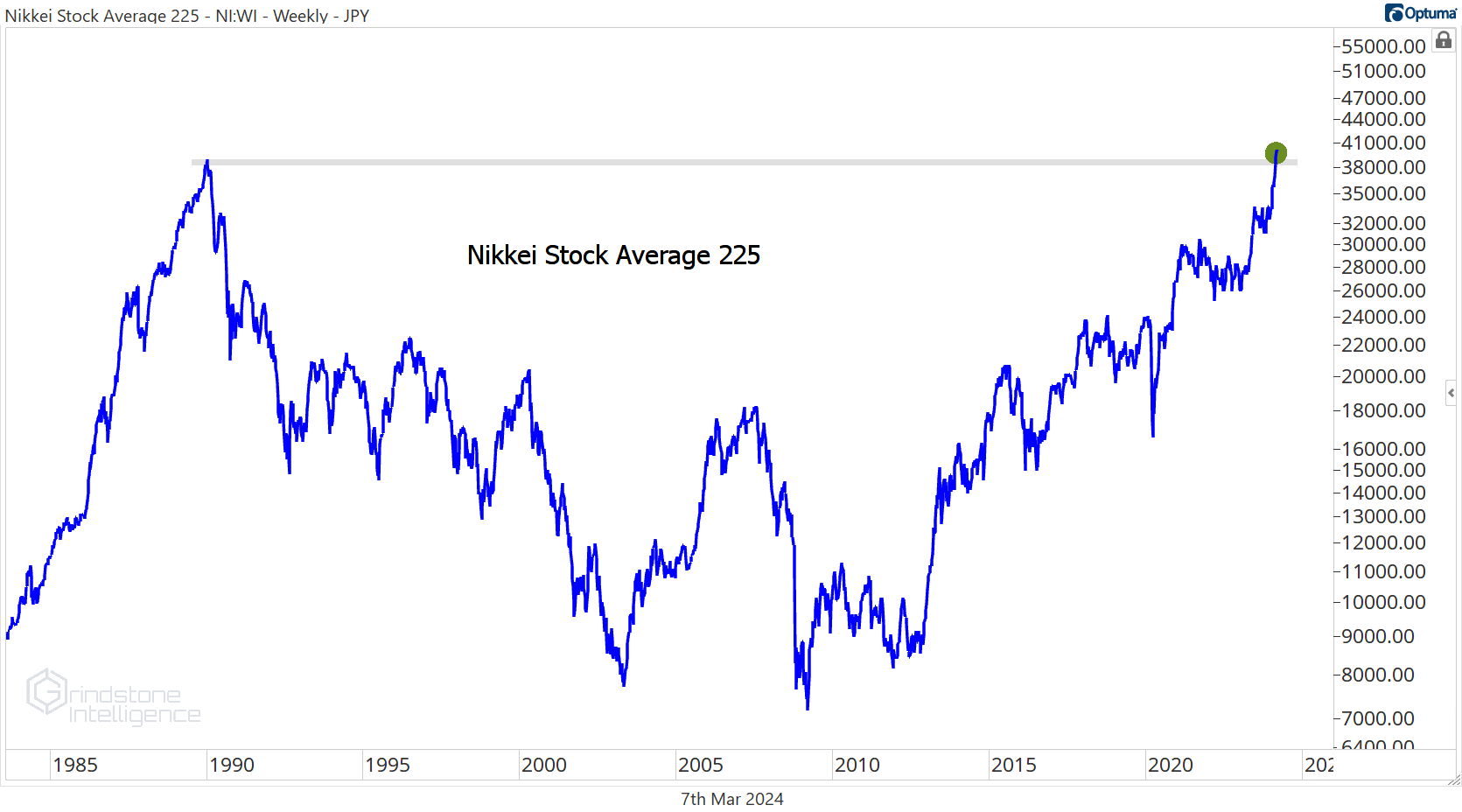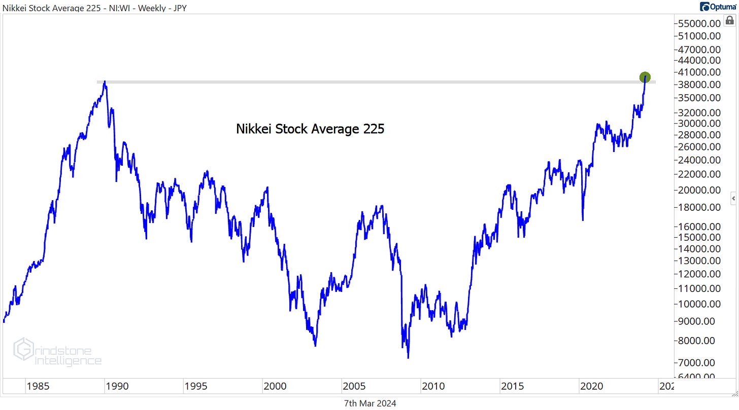 Japan just entered a recession according to most economists, but the stock market doesn’t seem to care. The Nikkei 225 just surpassed the all-time highs that were set more than 30 years ago! That’s not bearish.