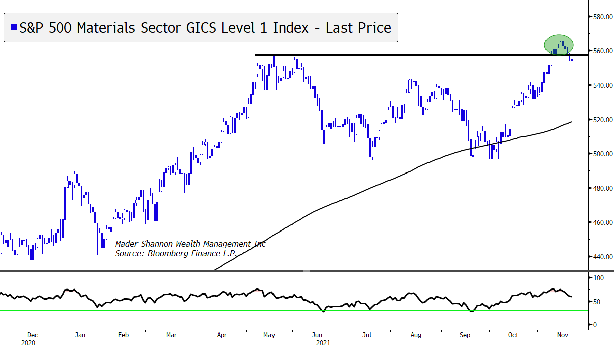 There’s a saying among technicians: from failed moves come fast moves. If Materials can’t reclaim that broken support, the risk is lower, not higher.