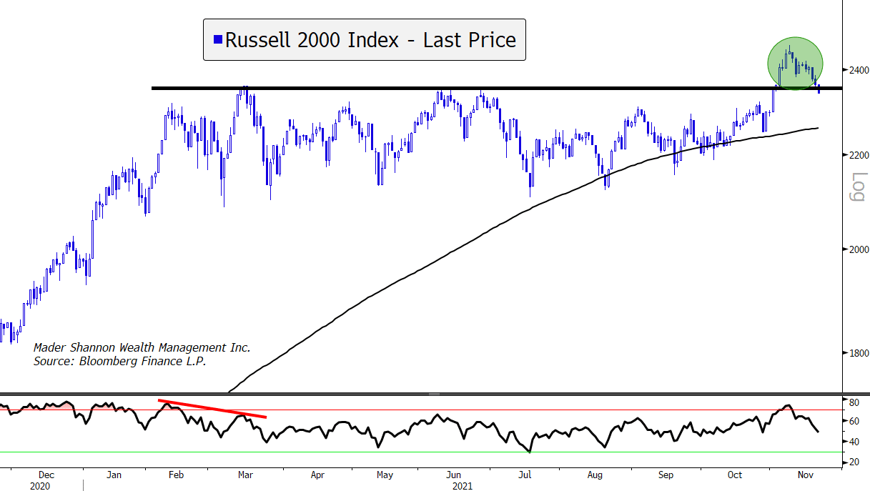 The discussion above was limited to S&P 500 sectors, but Small Caps are having trouble holding their recent breakout as well.