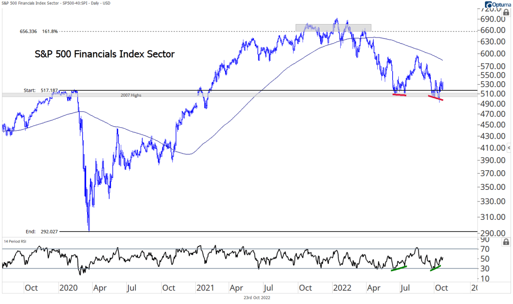 Unlike Tech in the chart above, bears couldn’t push Financials below their June lows (which also happen to be the highs from 2007 and 2020). The market’s largest sector is back above its June lows, and the areas showing relative strength never even broke them.