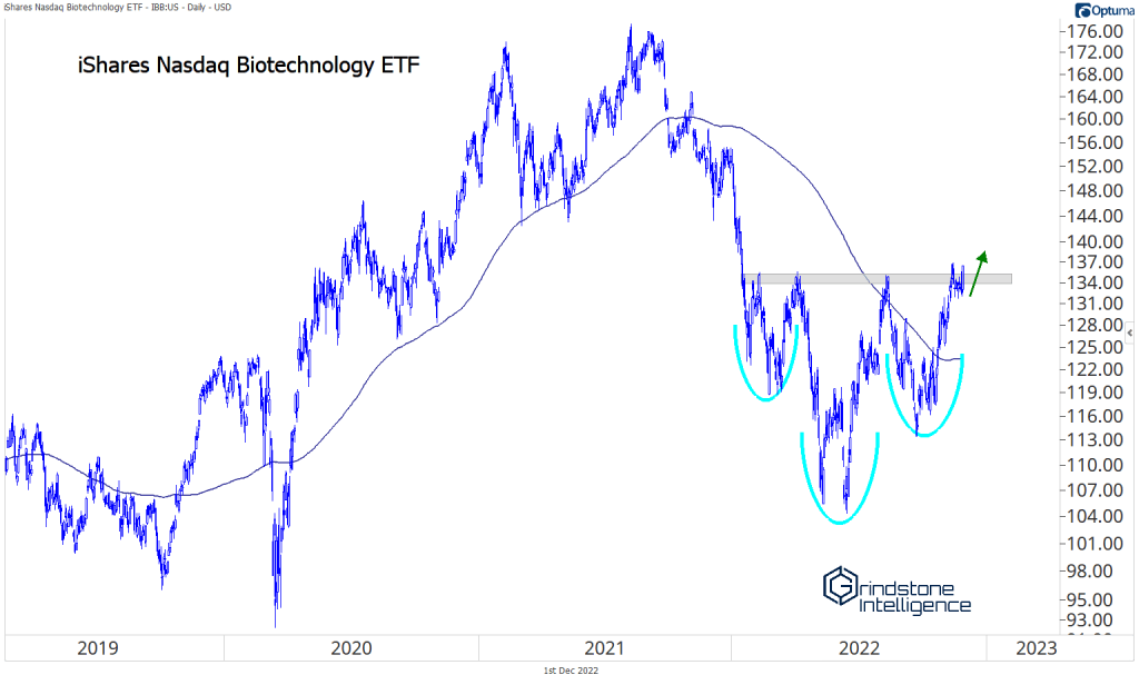 And Biotech stocks are completing an inverse head-and-shoulders reversal pattern that’s been developing for most of 2022. They could easily go and test the 2021 highs.