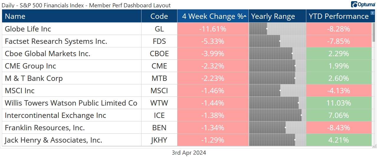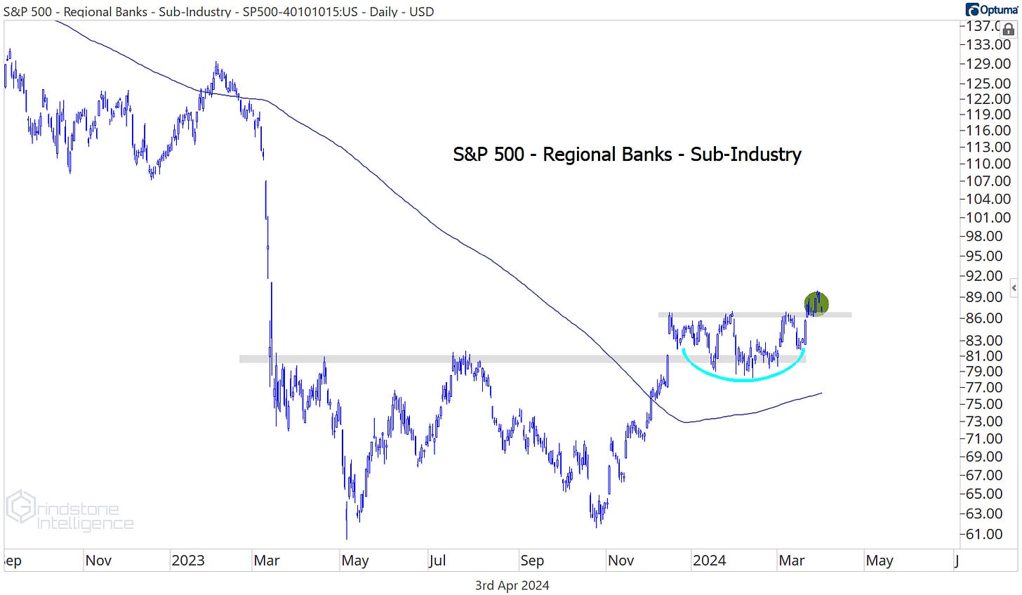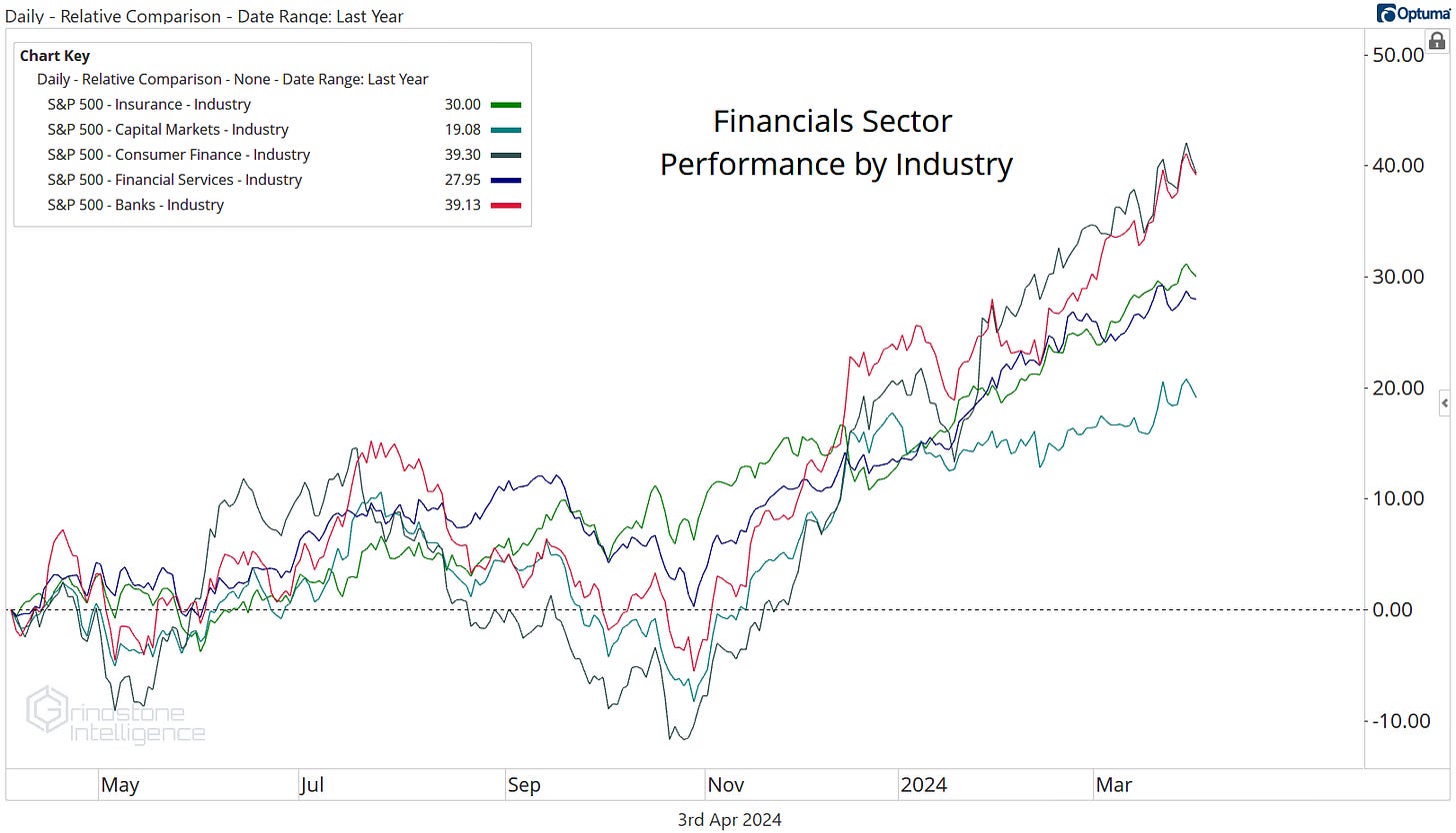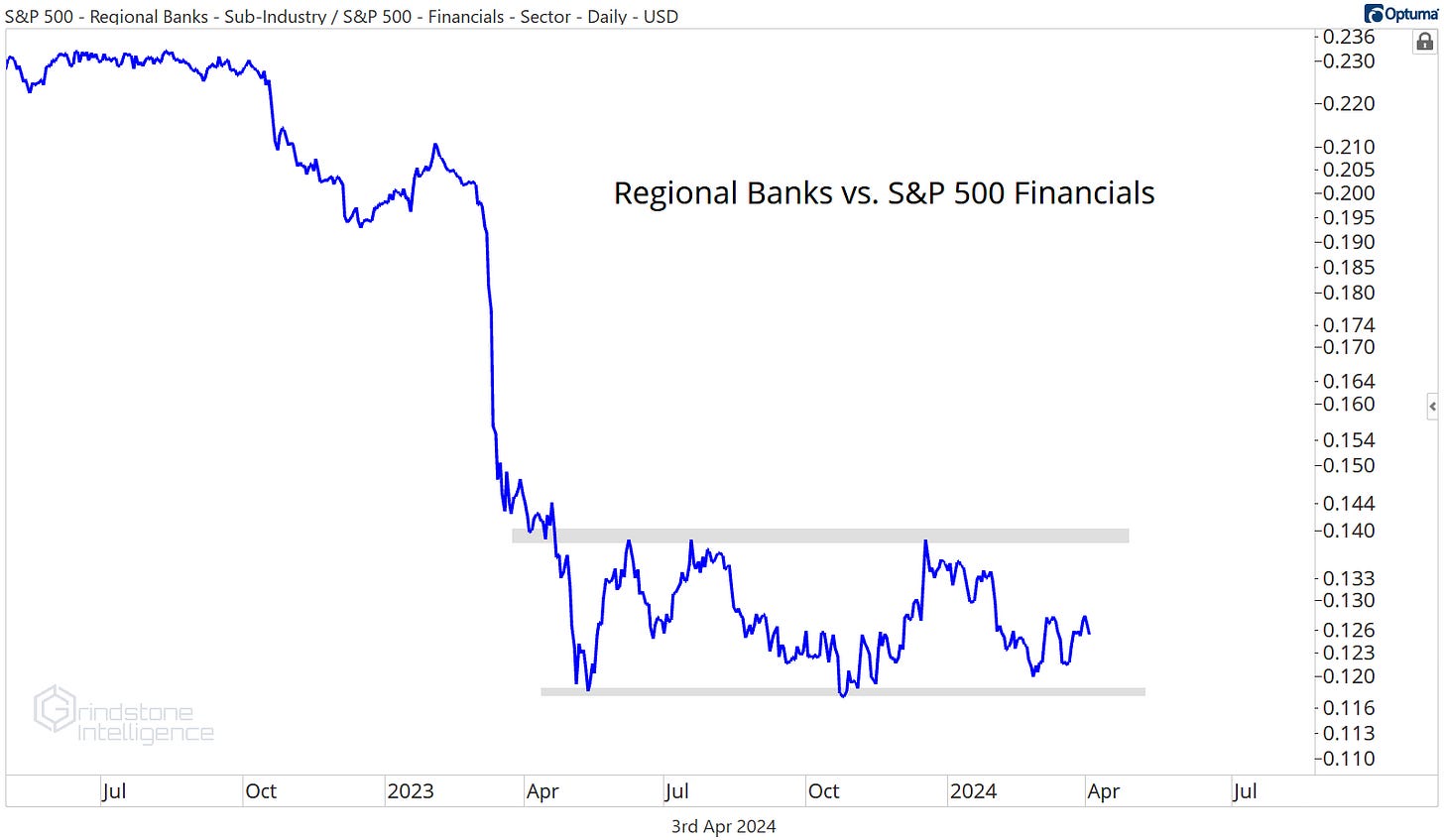 That doesn’t mean we have to be going out and buying a bunch of regional banks. As an industry, they aren’t showing any relative strength when compared to the rest of the Financials sector.