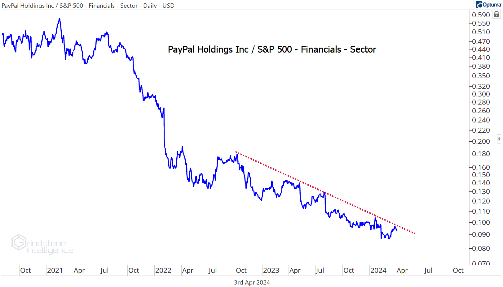 And compared to the rest of the Financials sector, the downtrend line is still very much intact.