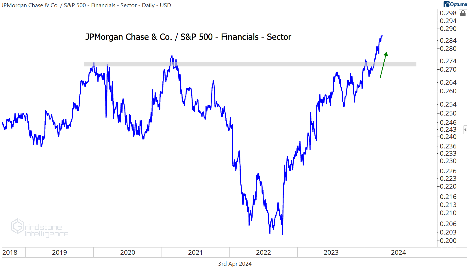 Speaking of bases, how about this multi-year breakout for JPMorgan compared to the rest of the sector? That’s not a bearish sign for what’s arguably one of the most important stocks in the entire world.