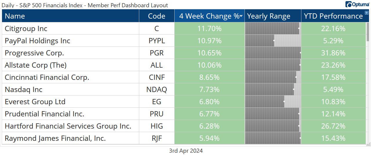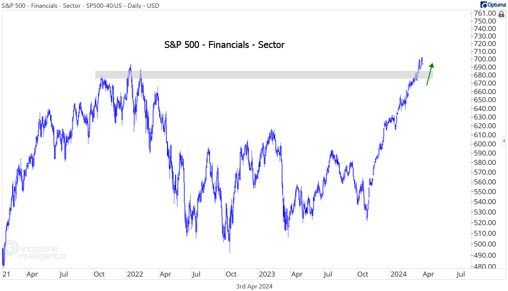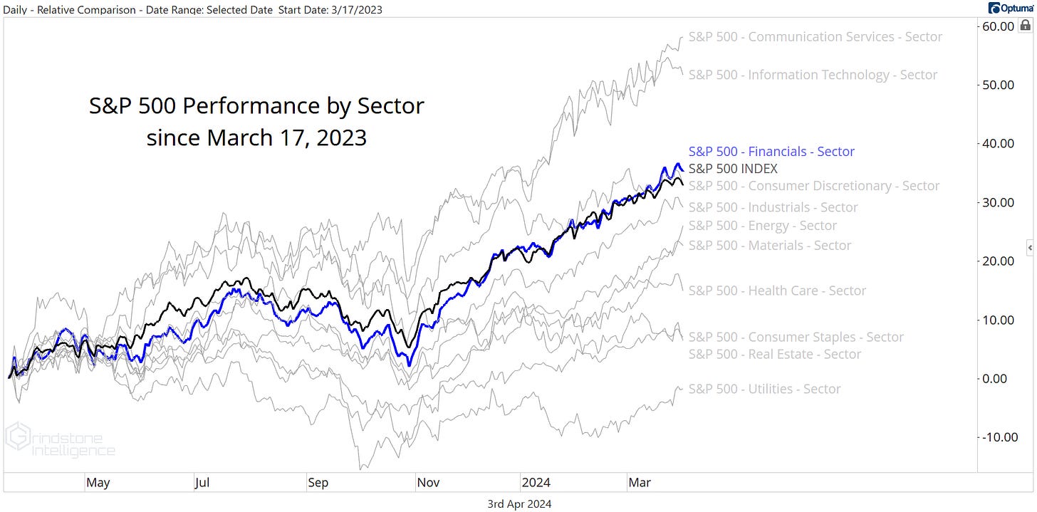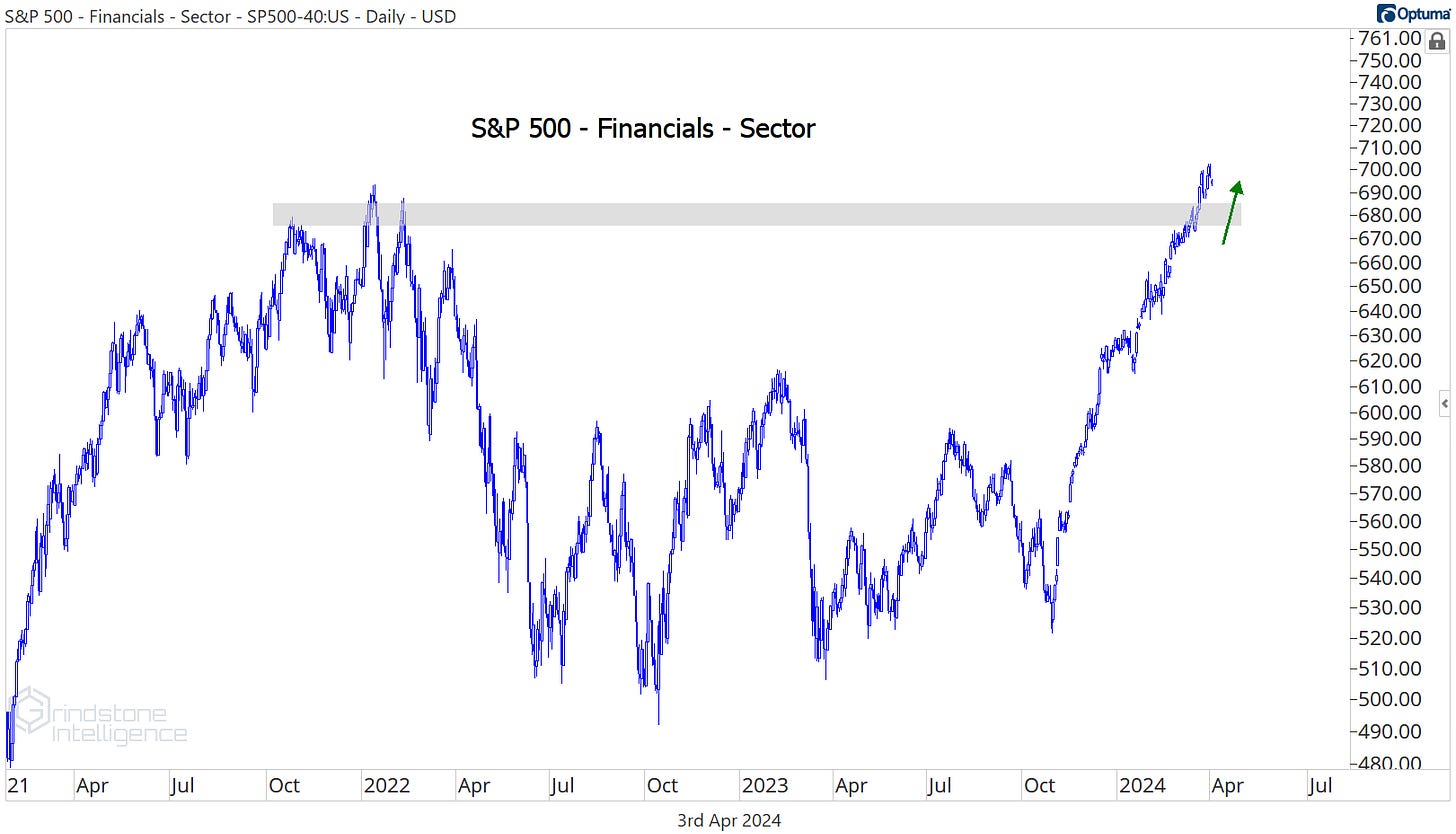 The Financials sector is setting new all-time highs.