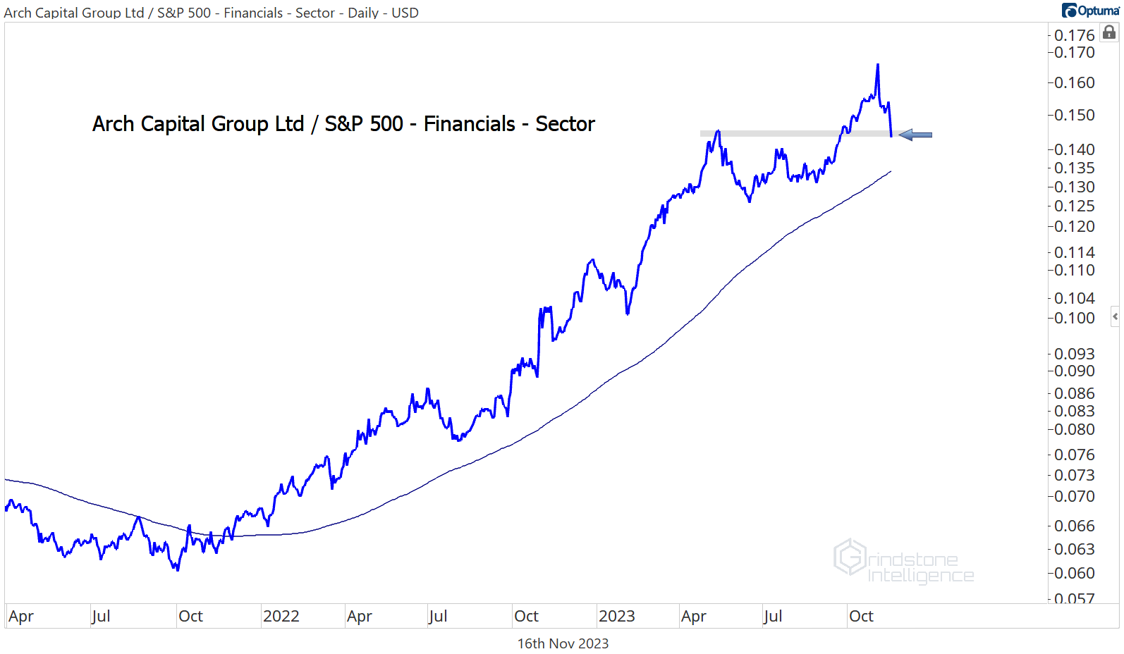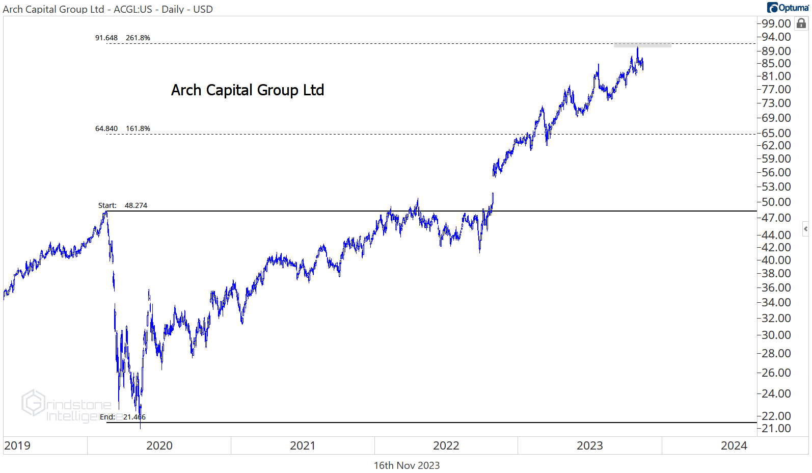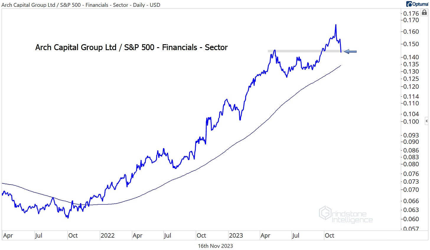 Arch Capital Group reached our target of the 261.8% retracement from the 2020 selloff, and now we want to step aside and see how the sector’s second-best YTD performer responds.