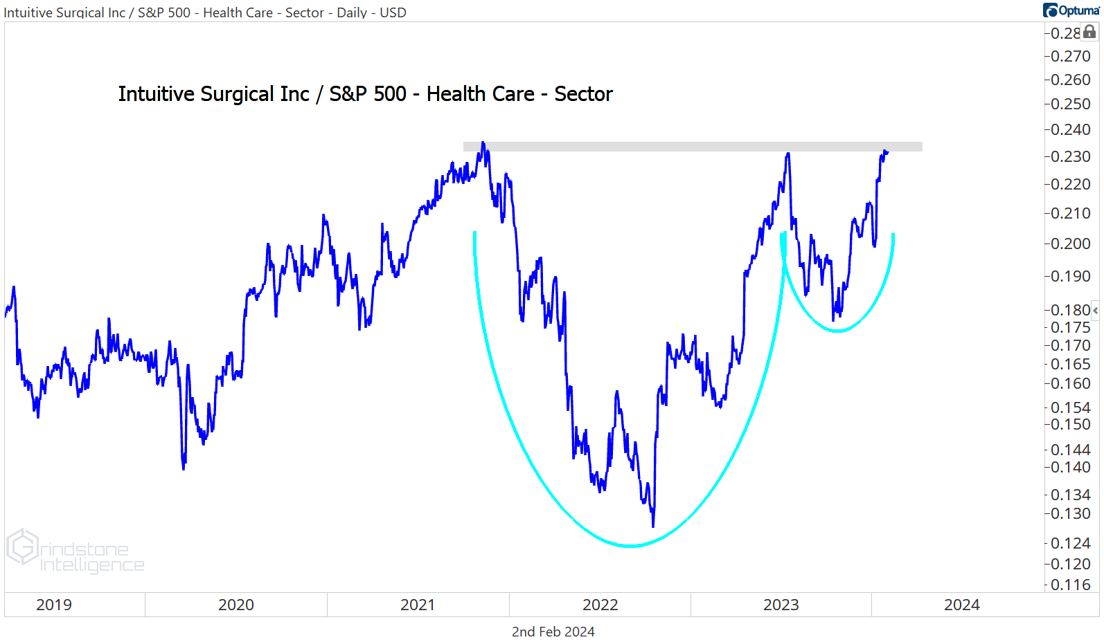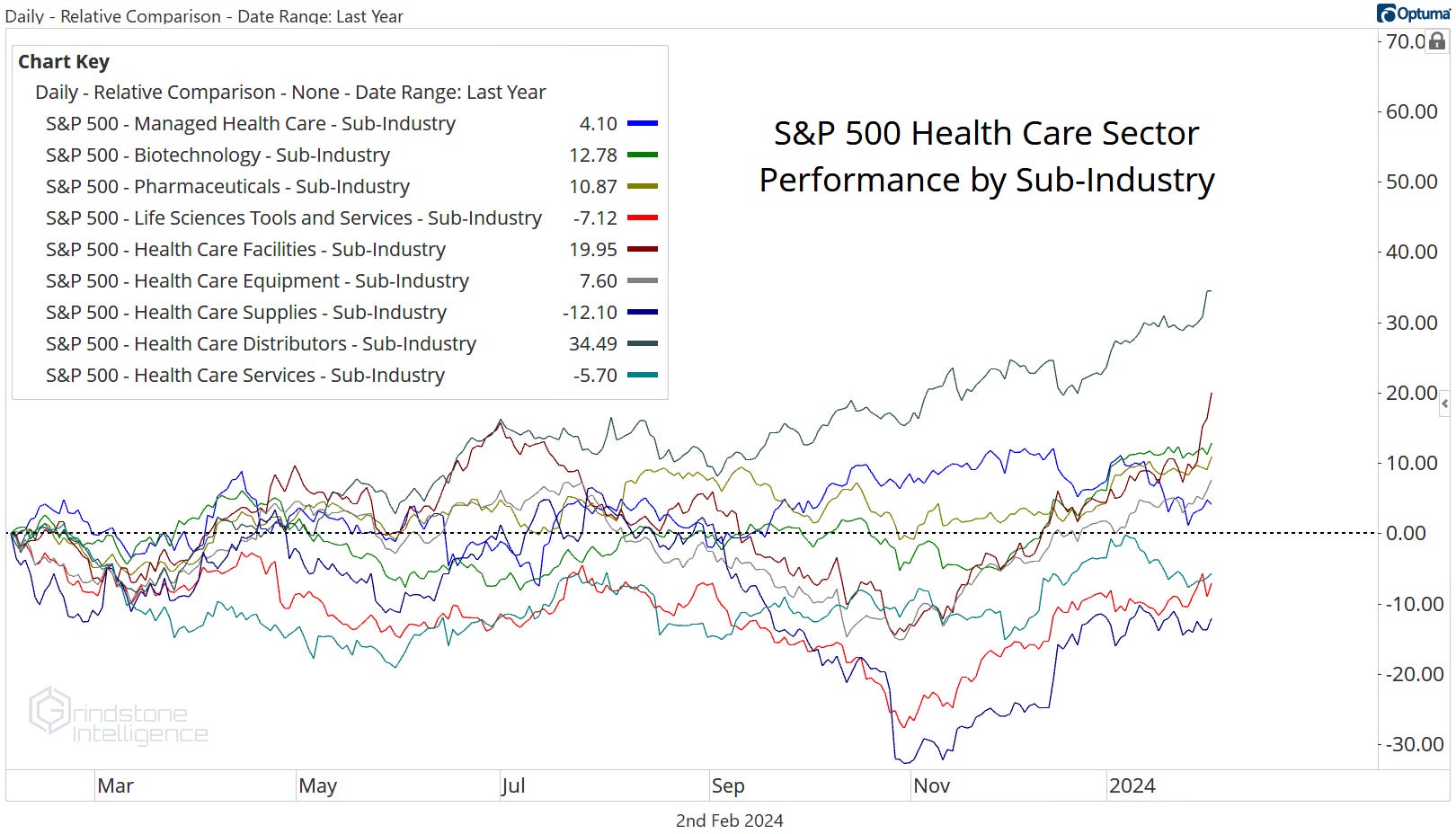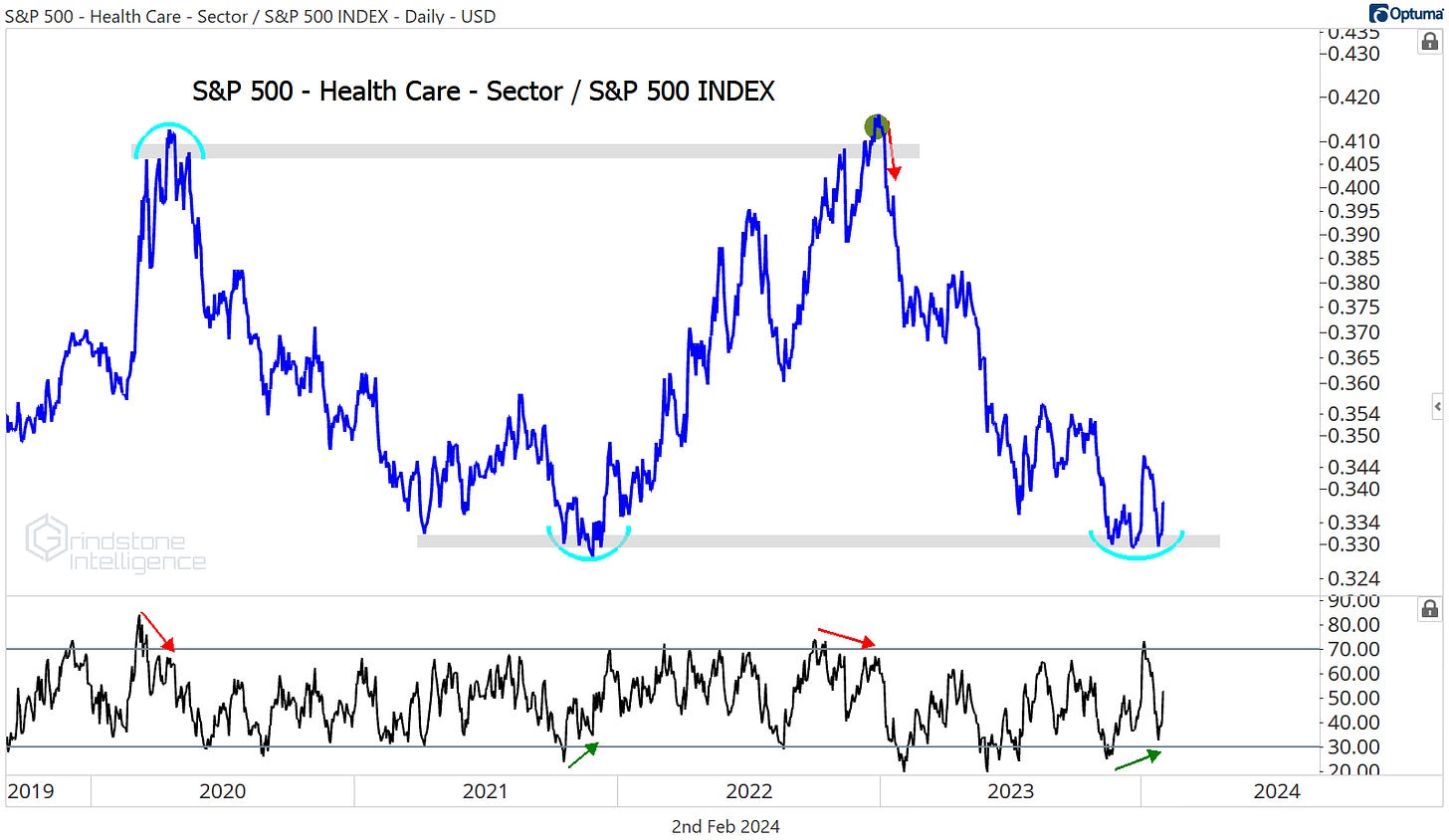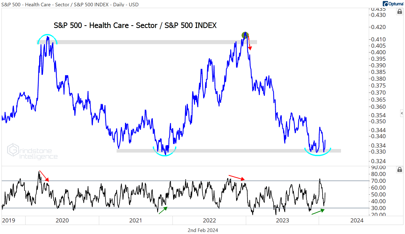 This is an area that was completely out of favor for most of the last year. During 2023, the Health Care sector underperformed the benchmark S&P 500 index by 20%, falling from 7-year relative highs to near multi-year relative lows. What better place for Health Care to bottom?