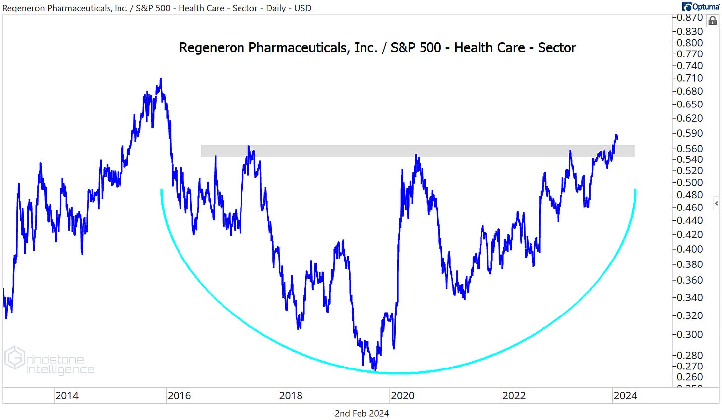 How can we ignore Regeneron? It’s breaking out of a 7-year base relative to the rest of Health Care.