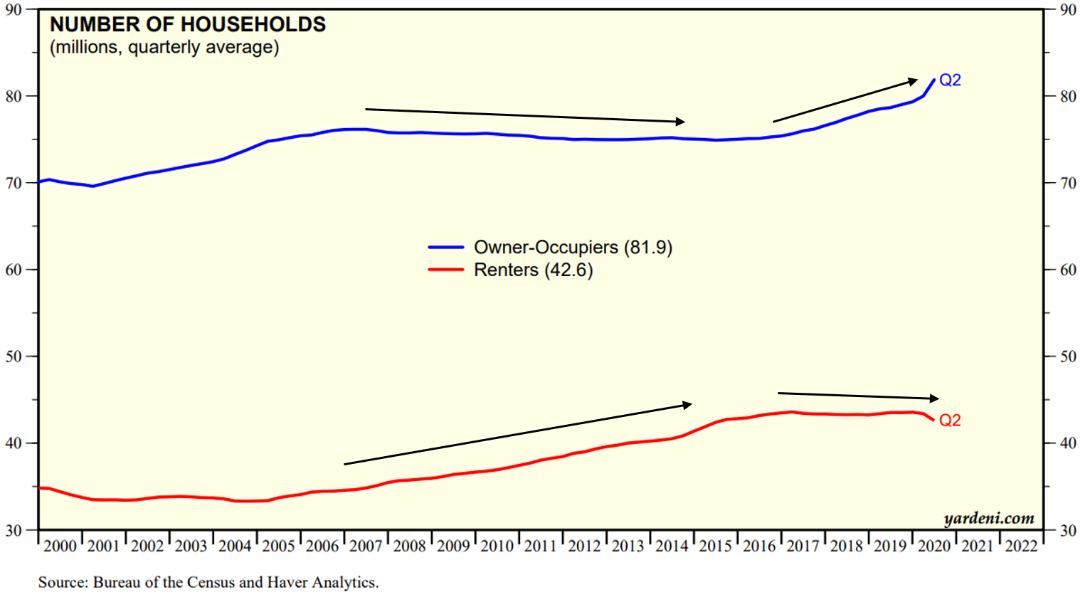 Millennials have notoriously postponed marriage and children until later in life compared to previous generations. But in recent years, household formation has picked up in the nation’s most populous demographic cohort. Growth in owner-occupier households outpaced that of renter households over the last few years and showed signs of acceleration in Q2.