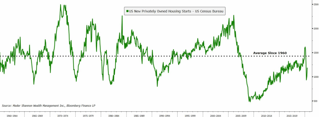 The supply of newly-built homes is similarly tight. The number of new housing starts just spent more than a decade below the 60 year average and is still far below the levels seen just before the Great Financial Crisis. A strong opening to 2020 pushed starts back above average for the first time since 2007, but progress stalled thanks to nationwide stay-at-home orders in the spring.