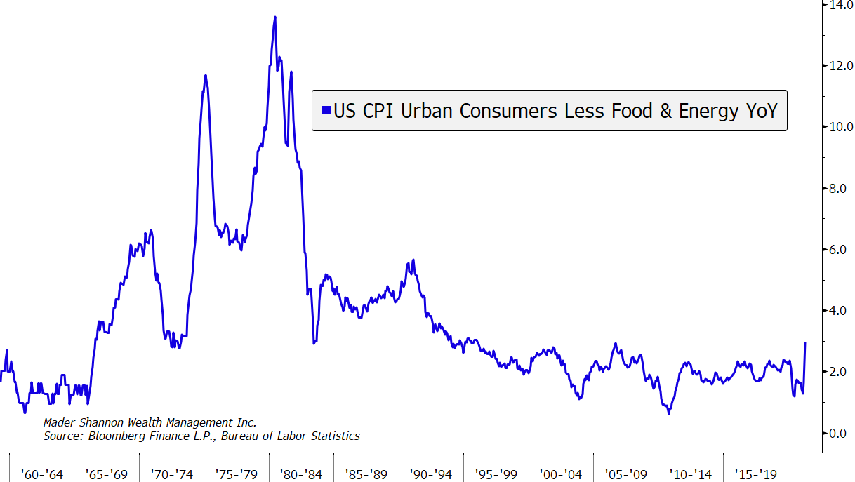 Bryan’s words, already more than 20 years old, ring ever true today. Inflation measures are on the rise, and a debate rages. One side argues that readings this year are a result of one-time and temporary price increases related to the pandemic, and therefore aren’t indicative of true inflation. The opposing side points to the extraordinary amount of fiscal and monetary stimulus unleashed in the last year as the primary cause of rising prices. This latter form of inflation, the one Barnard feared, tends to end in disaster.