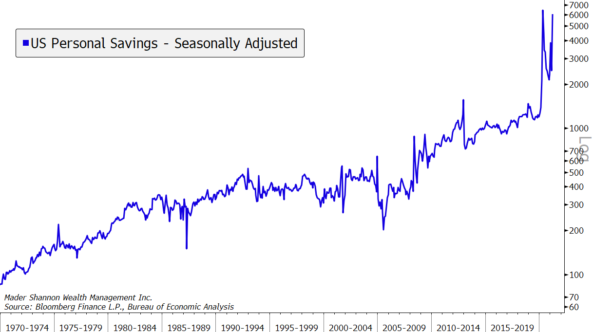 By and large, the stimulus worked as intended. Thousands of businesses were able to access cheap credit and stay afloat. Millions of workers lost their jobs, but direct checks and enhanced unemployment benefits were so substantial that aggregate U.S. personal income jumped a record amount to reach new highs. As a result, consumer balance sheets are abnormally healthy.