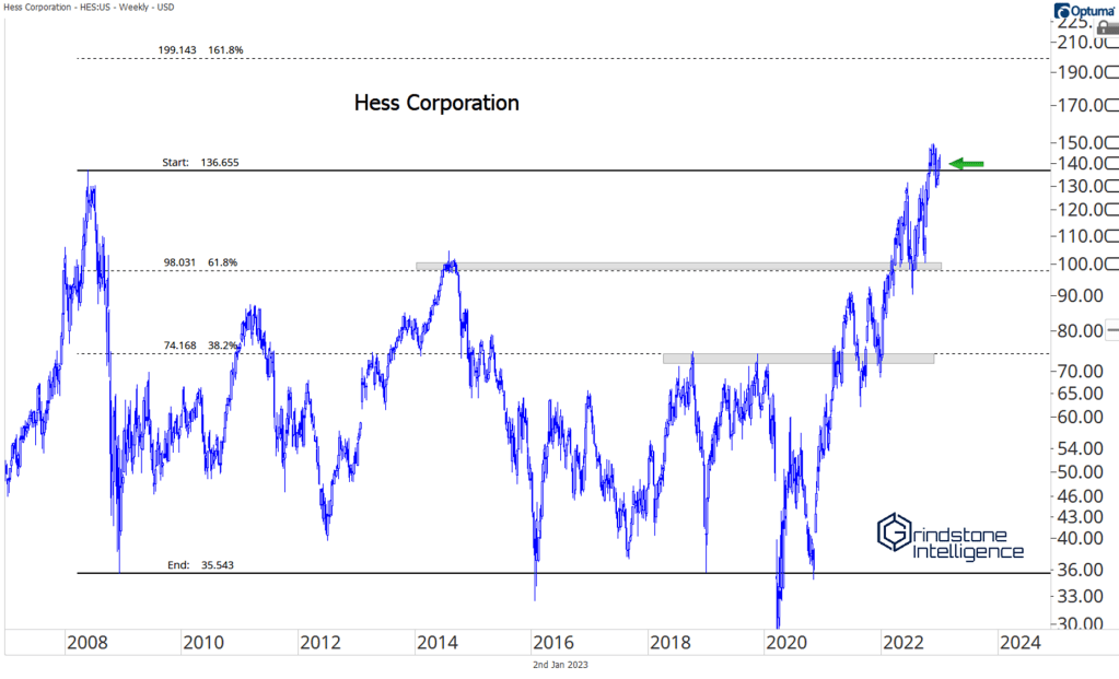 One development in the sector that’s worth watching is the recent relative strength shown by the oil services industry. Hess is hanging above 15-year highs.