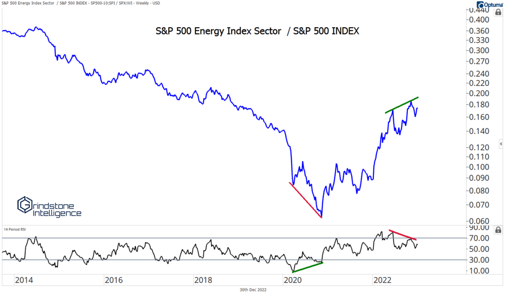 We downgraded the Energy sector shortly after publishing our December outlook. Bearish weekly momentum divergences on both the relative and absolute charts have us cautious about the future of the sector.