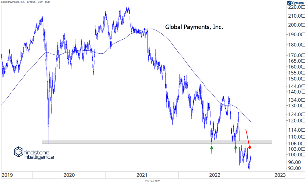 The other thing stocks in uptrends don’t do is break to new lows, like Global Payments did here.