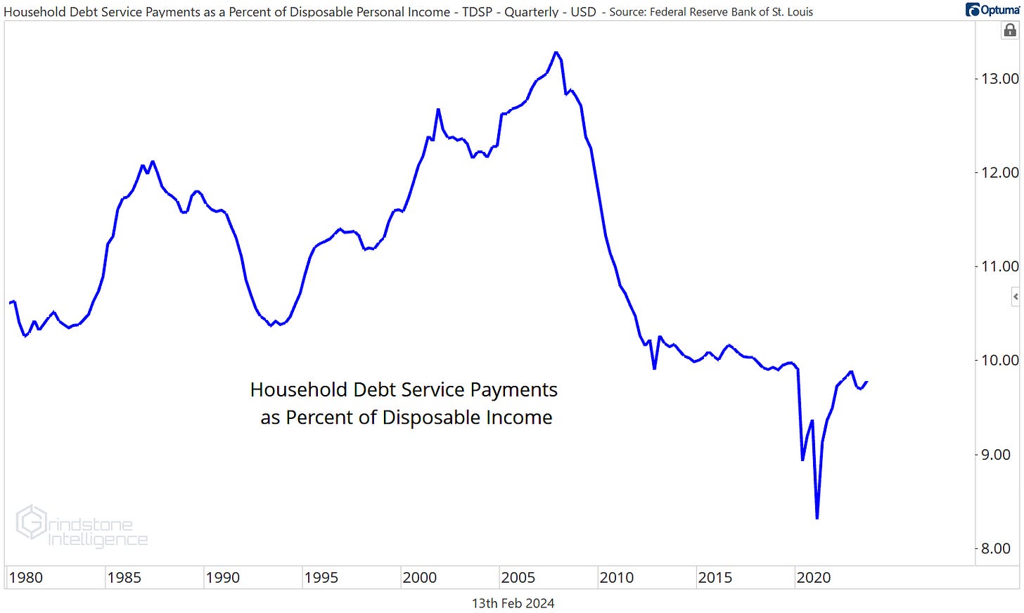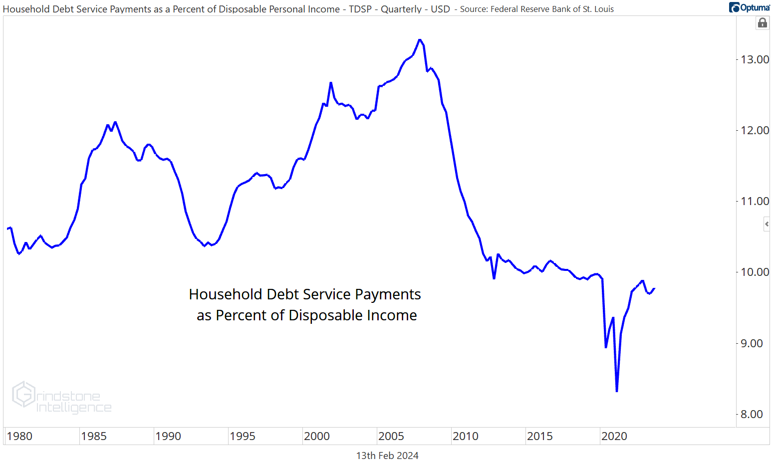 It’s not hard to find someone that will tell you these debt levels are unsustainable. Dave Ramsey probably has a stroke every time he thinks about it. After all, this is one TRILLION Dollars! But debt levels only become a widespread problem when people can’t pay their bills. And thanks to rising incomes, debt is more manageable than it was in the 40 years prior to 2020. Household debt service payments as a percent of disposable income were still below 10% in the third quarter.