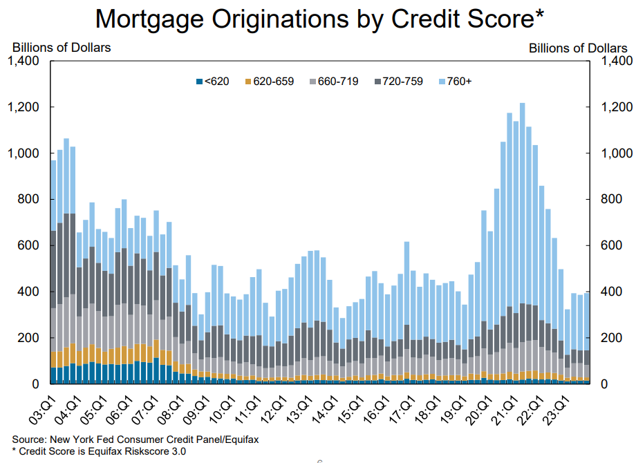 Just as there are layers to the stock market, though, there are layers to the US economy. We can’t hope to adequately describe credit conditions with a single chart. Some context on the total delinquencies number is important. Ultra-low interest rates in 2020 and 2021 prompted millions of Americans to either buy a home or refinance their mortgage. Mortgage originations more than doubled from 2019 to 2021.