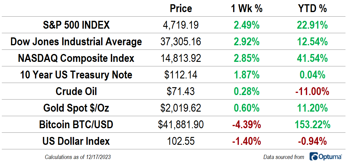 The S&P 500 Index rose for the seventh consecutive week and the Dow Jones Industrial average jumped nearly 3% to close at its highest level ever. Thank Jerome Powell & Co.