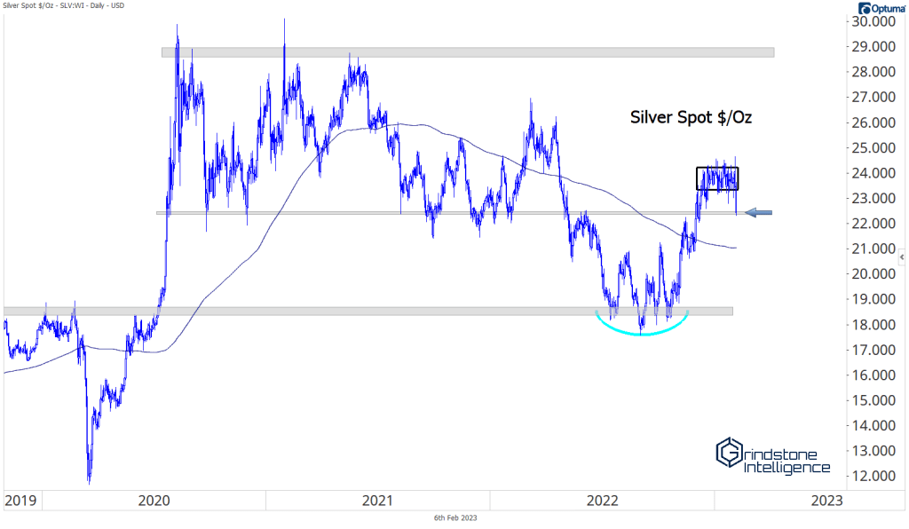 Silver and gold tend to be highly correlated, but silver tends to move in greater magnitudes. When the precious metals space is under pressure, silver tends to lag, and vice versa – in a bull market, we should expect silver to outperform. When that isn’t happening, we need to pay attention.