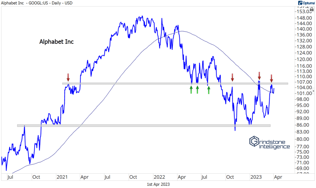 Alphabet, too, is at a key level. 107 was resistance in early 2021, support in the summer of 2022, and then resistance again over the past 6 months. Can it surpass that level on a fourth attempt? We’ll have to wait and see.