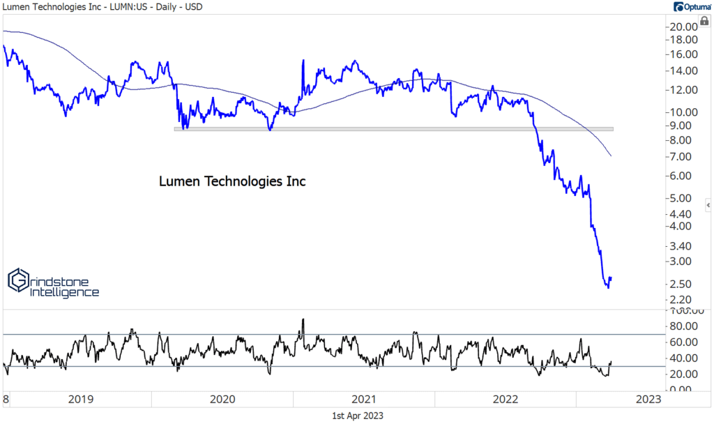 Not all of the sector looks so bright. Dish and Lumen are still stuck long-term downtrends.