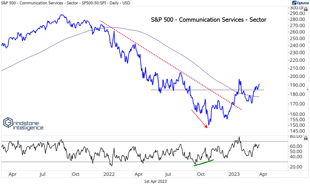Throughout most of 2022, Communication Services was one of the worst places you could put your money. But when the sector broke down to new lows in November, momentum failed to confirm the selloff, signaling a bullish divergence. Our view on momentum divergences is that they usually lead to mean reversion rallies. Those mean reversion rallies sometimes lead to trend reversals.