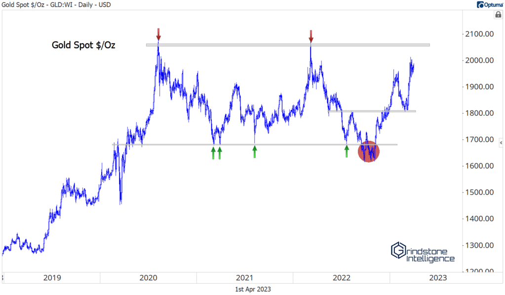 If it does, that could easily support gold prices moving above 2000 and to all-time highs. The failed breakdown last fall has proved the perfect catalyst to get gold moving higher.