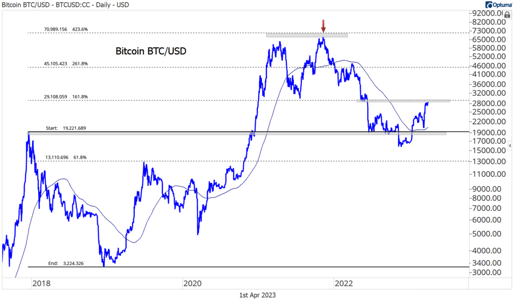 Cryptocurrencies are at the forefront of investor returns this year. That follows a horrendous 2022, in which Bitcoin dropped by more than 60% and crypto volatility fueled the meltdowns of Terra and FTX.