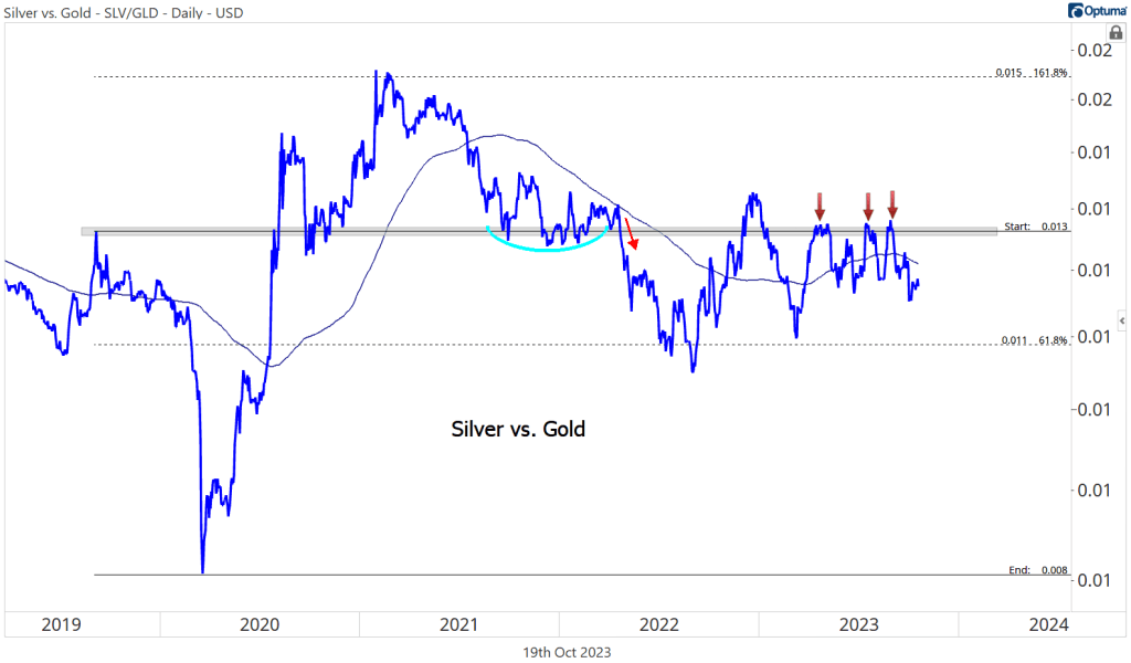 The 2019 high in the silver/gold ratio is what we’re watching.