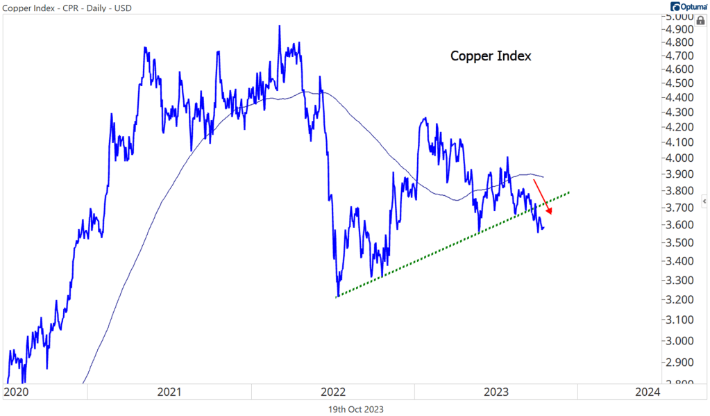 We’d like the base metals more if copper had been able to maintain its uptrend line from last summer’s lows. But it didn’t.