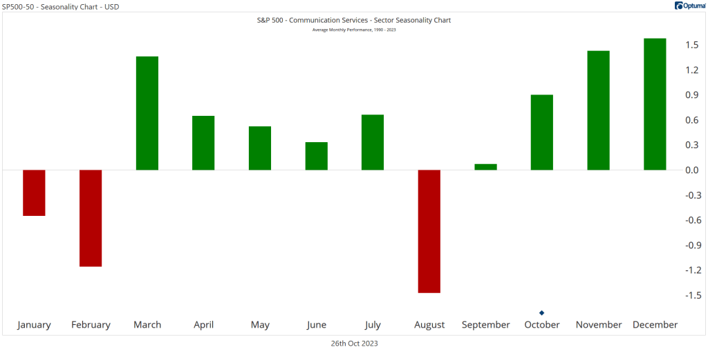 That's worrisome considering the strong seasonal tailwinds that are in place. The fourth quarter is supposed to be the best time of the year for the sector, but that hasn't played out yet in 2023. When Often, the best lessons from seasonality are when stocks don't follow their seasonal patterns. If we can't rally during the best times, what do you think will happen during the worst?