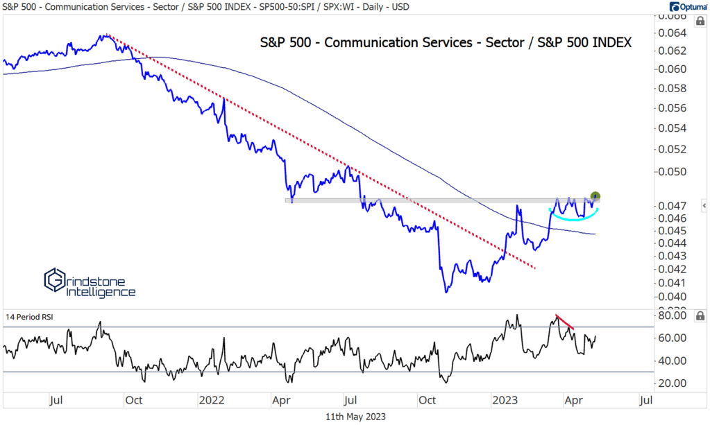 Communication Services indeed took a breather, but it worked off that bearish momentum divergence with time, not price. Yesterday, the sector broke out to 9-month relative highs. What’s not to like?
