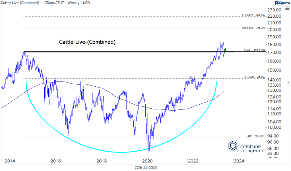 Cattle prices continue to break out, too. A move to $200 isn’t out of the question.
