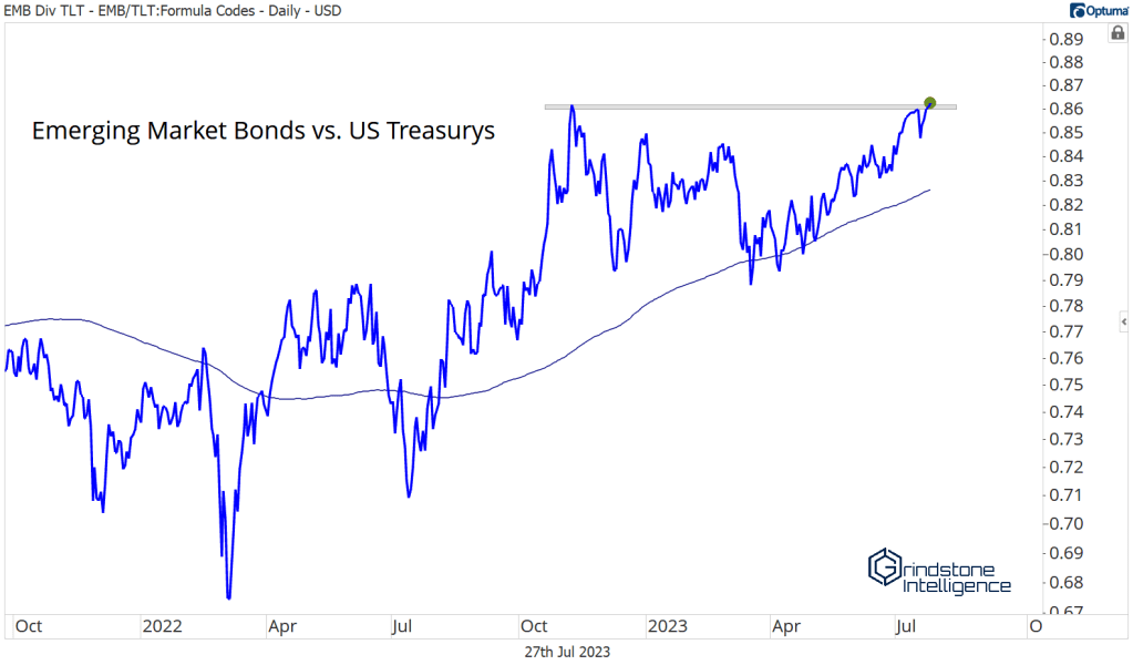Even within bonds, we’re seeing evidence of risk appetite. Emerging market bonds are breaking out relative to US Treasurys. Would investors be buying risky emerging market debt if they thought the world was on the verge of collapse? We think not.