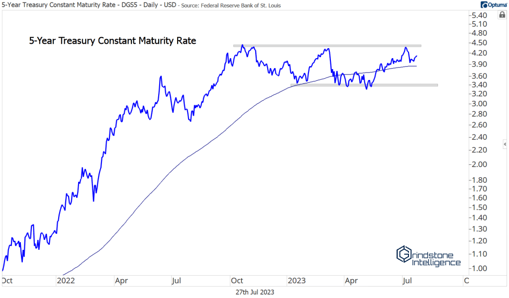 Keep an eye on 5-year Treasury yields, which have a history of being an early mover along the yield curve. If 5s are breaking out above 4.50%, we need to be seriously reassessing our appetite for risk, and we need to be wary of a broad move lower in bond prices.