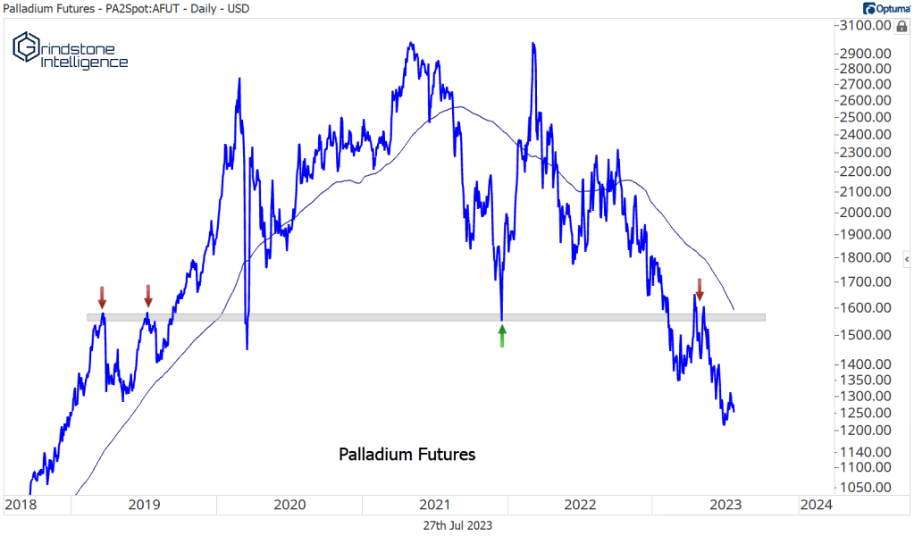 We can’t say the same about Palladium, another precious metal. It’s now at its lowest level since 2018, and any bounce will be resolutely contested by a key rotational level just below $1600. If anything, we want to be selling Palladium on rallies, not hoping for a reversal out of the blue.