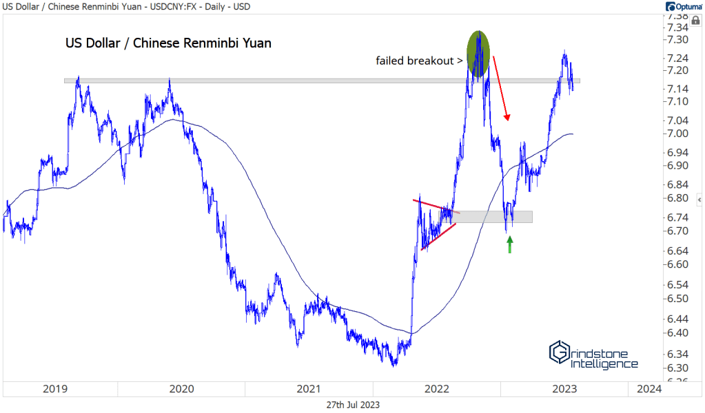 This move in the Dollar/Yuan is worth keeping an eye on, too. We’re working on what could be another failed breakout, as the Chinese government tries to stabilize both their economy and the wild moves in exchange rates.