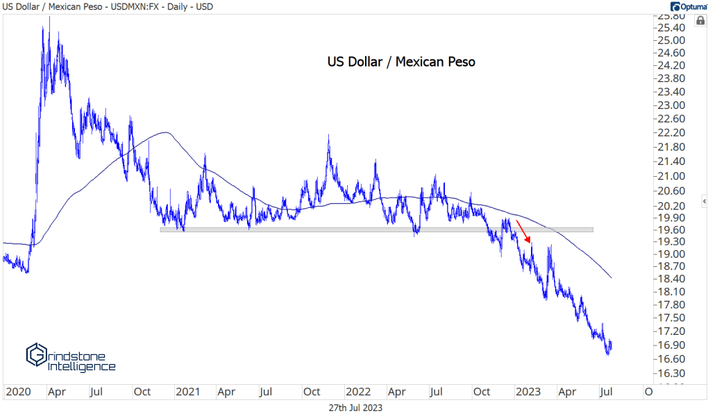 One of the few places where the trend is clear is in the USD/MXN cross. The Peso is setting multi-year highs against the Dollar, and shows no signs of stopping. Interestingly, this cross tends to move with the VIX. Stronger Peso = lower vol and higher stocks.