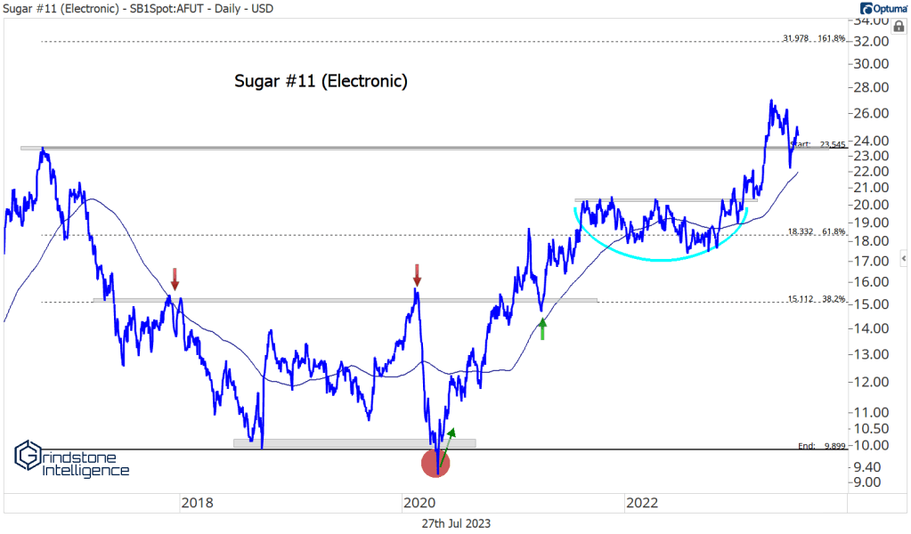 And Sugar has recovered above its 2016 highs after a sharp selloff in June. With our risk clearly defined at $23.50, we’re looking for a rally to $32 in Sugar, which is the 161.8 retracement from the big 2016-2018 decline and also lines up with the all-time highs from back in 2011.